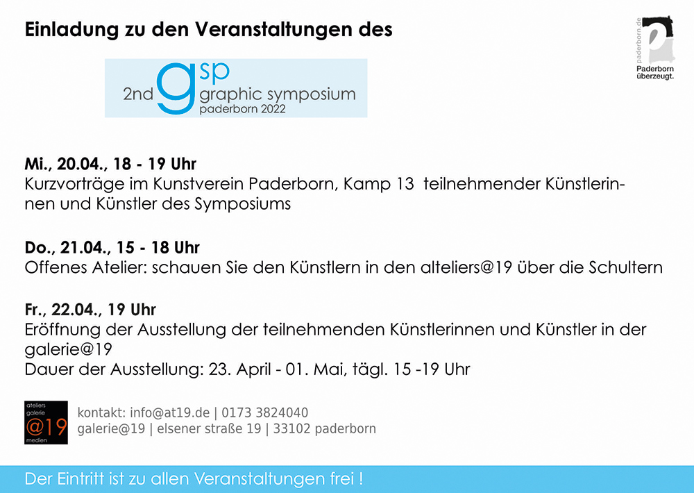 am freitag um 19 Uhr eröffnet die ateliervorschau im kunstverein paderborn. wir laden herzlich dazu ein. ich freue mich mit meiner arbeit im kunstverein vertreten zu sein.