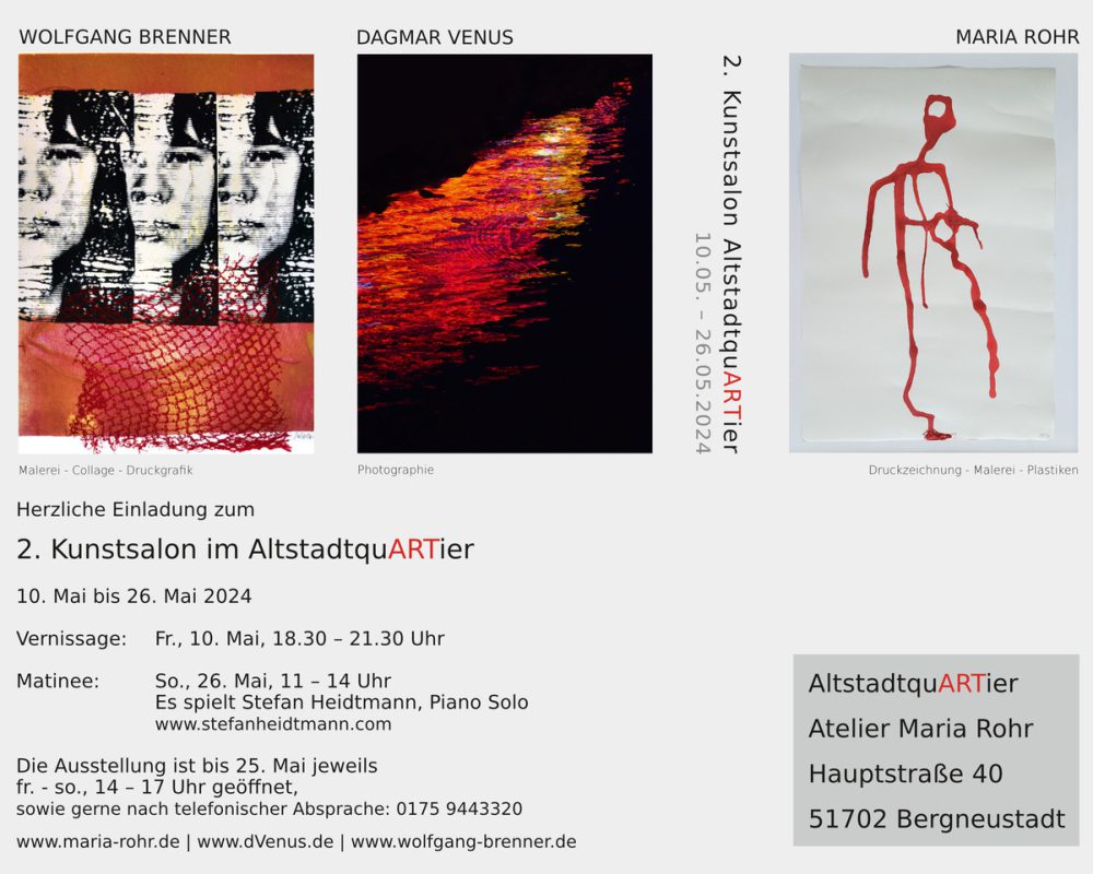 ausstellung meine arbeiten werden im 2. kunstsalon im altstadtquartier zu sehen sein. gemeinsam mit maria rohr und wolfgang brenner.
